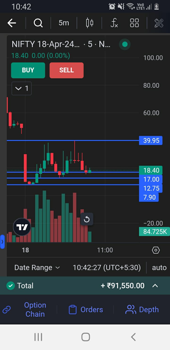 Yesterday's Nifty call got me up right with 🎉🎉91k in a single shot. Bullish today with some good range and unstable pattern. Looking for more trades like this in upcoming week. Note : Sharing this to just educate people for the power of Trading in