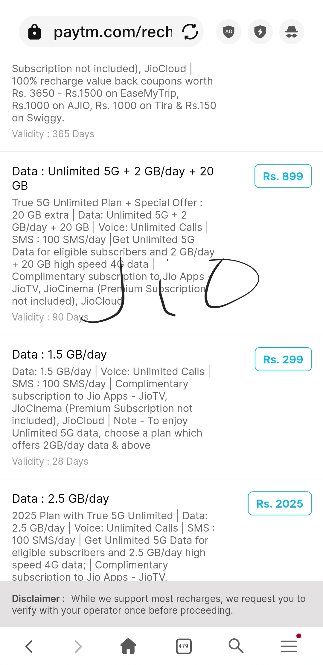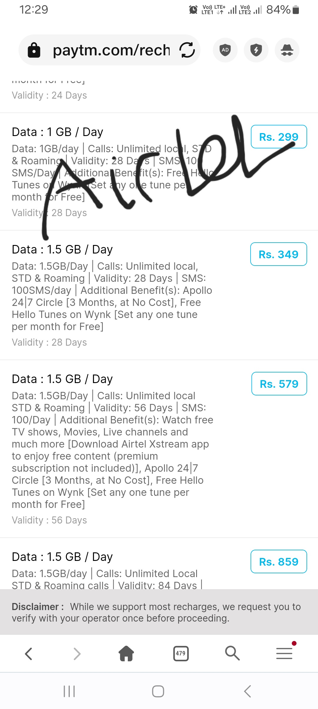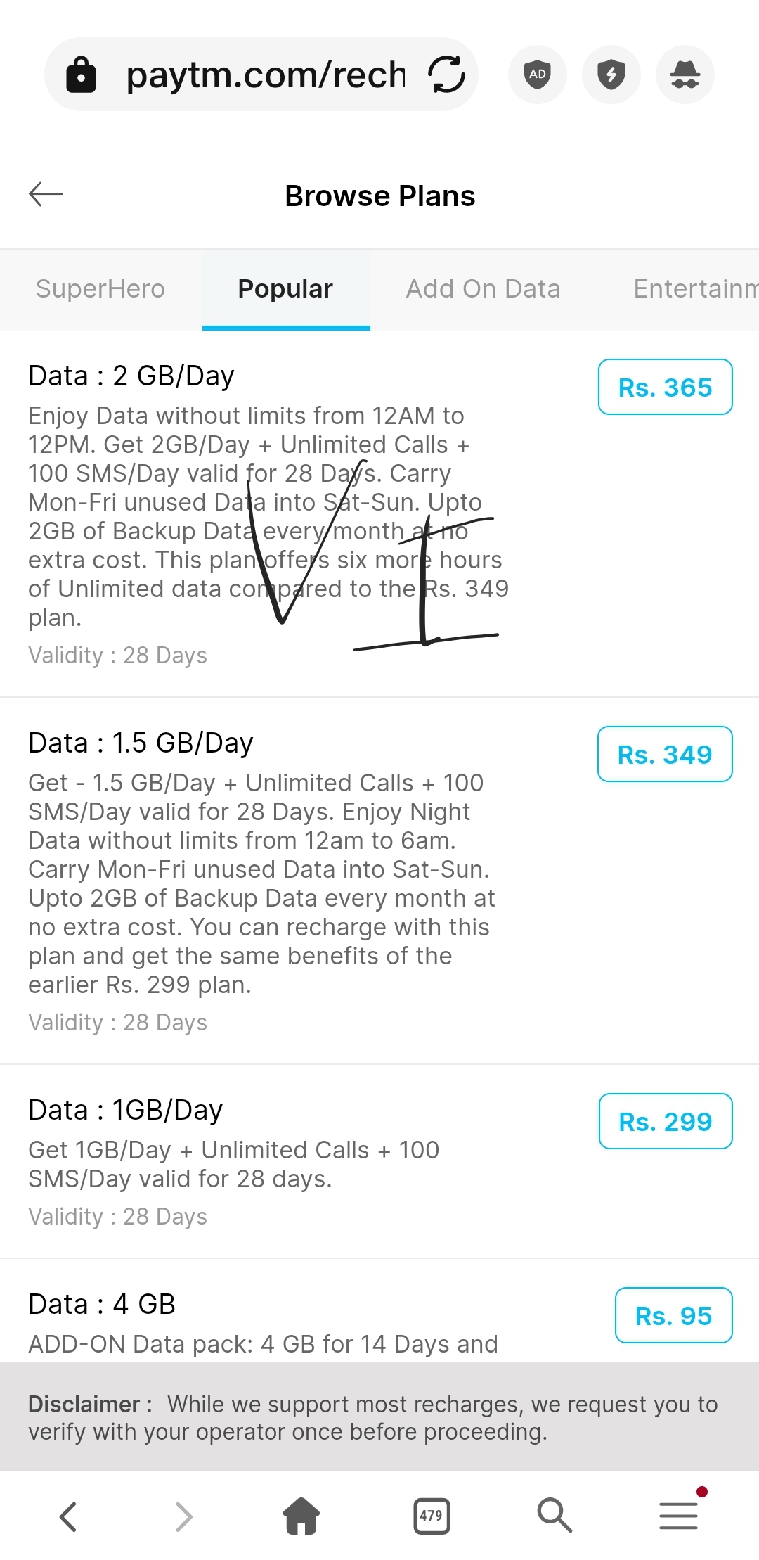 it's wrong. Airtel and VI are priced at 349 only for 28 days only.. But for Jio, the prices are 299 and not 199.
