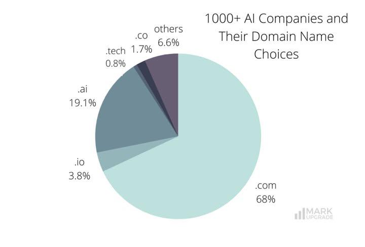 1000+ AI Companies and Their Domain Name Choices .com is the preferred choice among the companies on our list, with 713 out of 1048 securing a .com domain name for their online presence. Customers trust .com as it has dominated the internet for ever