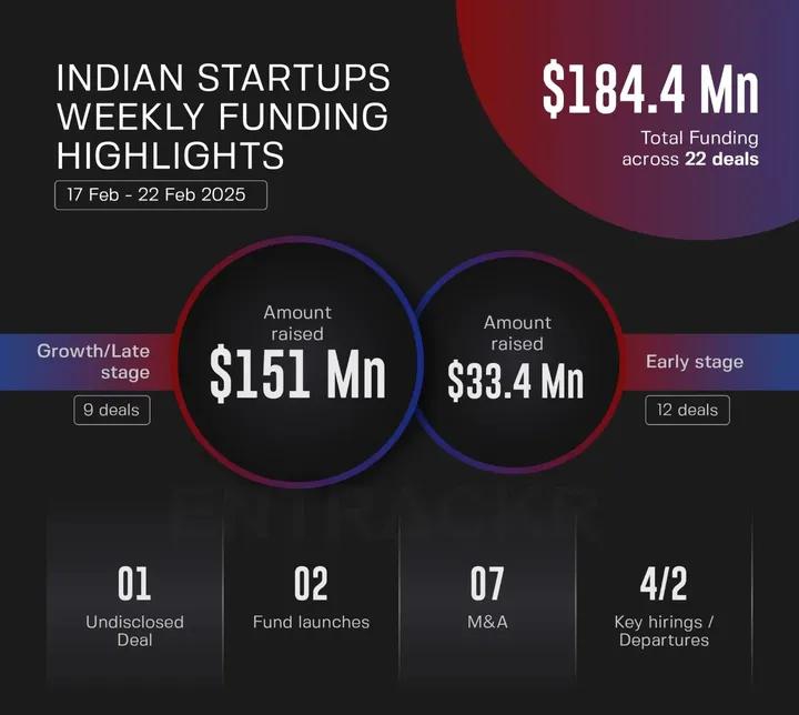 🚀22 startups 💰~$185 Mn total funding 🌱13 early stage deals 🧑💻 4 key hirings 💵 2 fund launches 🤝 7 M&A
