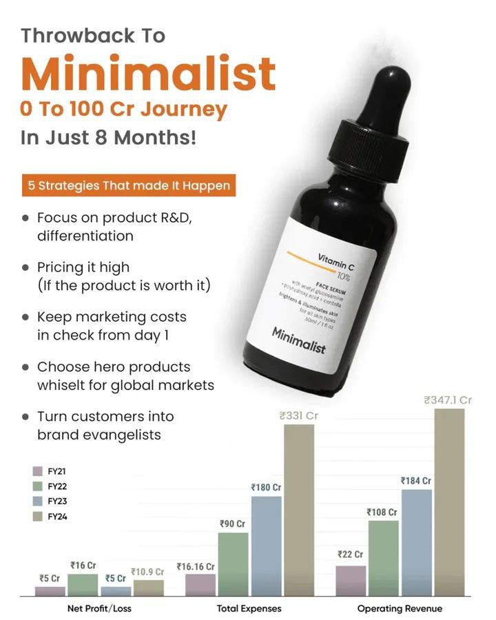 Minimalist was acquired at 2900 Crores by HUL and here is the revenue sheet of minimalist and some majore strategies that led the company to this massive success.