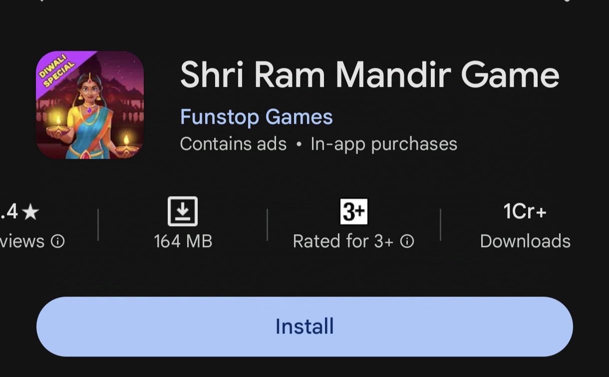 🙂 Whatever you say , 🇮🇳 India is the only country where 110 crores+ people's are following 🕉️ Sanatan Dharam and few people's are so connected and that's why games like Ram Mandir getting so much downloads and completed 1 Crores+ downloads in fe