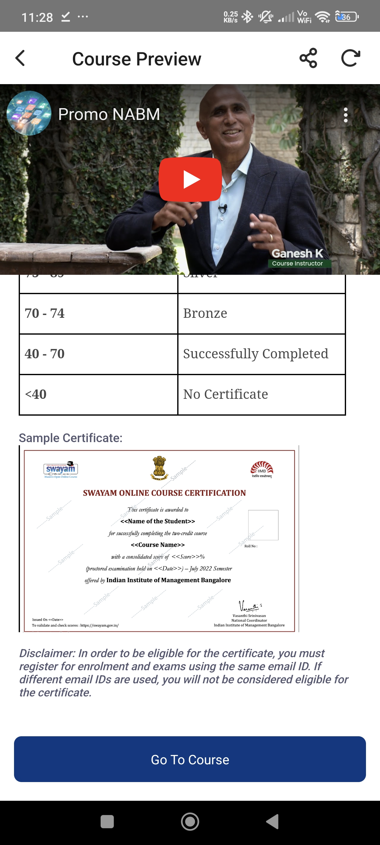 The Swayam portal by the Government of India offers an excellent learning experience for business courses. It's completely free and provides government-certified certificates upon completion. Plus, the exams included in the courses help ensure a soli