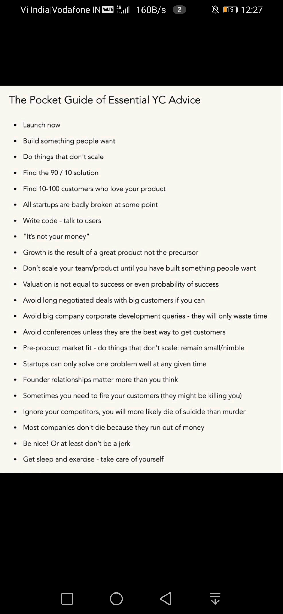 Most founders get the basics wrong. In my experience, these are the 5 main core for startup growth: 1. Launch fast โ Speed matters more than perfection. It can be eventually perfected in version 2,3,... 2. Solve a real problem โ Build what people actually need. Analyse the market understand the product and market needs, thats how you get a PMF 3. Focus on one problem โ Dont try to do everything at once, just solve 1 problem really well, super narrow focused 4. Founder relationships matter the most โ Internal conflicts kill startups. Trust, communication & respect is very important to achieve this 5. Execution > money โ Move fast. Startups fail because of poor execution, not lack of funding Its all about speed, problem-solving, focus, strong partnerships, and execution. If you nail these 5,everything else finds its place These are basics, but you can also check the pocket guide from YC What do you think is core for a startup?