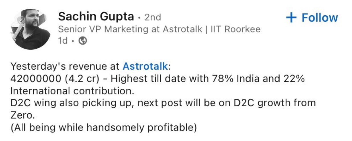 Look at astrotalks revenue You can infer the state of a country by looking at what products are winning