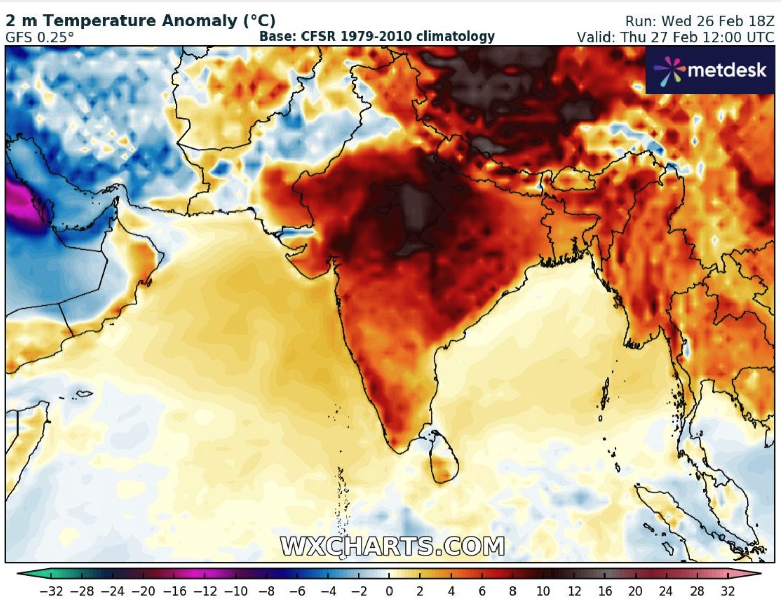 The temperature map tells a worrying story: spring is vanishing from South Asia. With February temperatures already hitting 38°C, we face serious threats to agriculture, water security, and livable conditions. Our region needs urgent climate action, but leadership remains inadequate and public awareness lags behind the rapidly unfolding crisis.