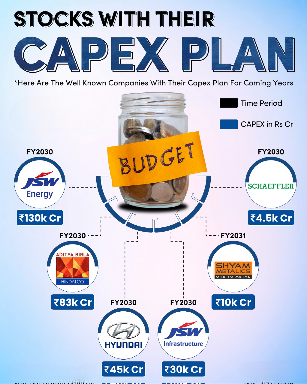 Big Companies, Bigger CAPEX Plans! 💰 These top brands are gearing up for massive investments by 2030 & beyond 🚀 🔥 Highlights: ⚡ JSW Energy – ₹130K Cr 🏗️ Aditya Birla (Hindalco) – ₹83K Cr 🚗 Hyundai – ₹45K Cr 🏢 JSW Infrastructure – ₹30K Cr ⚙️ S