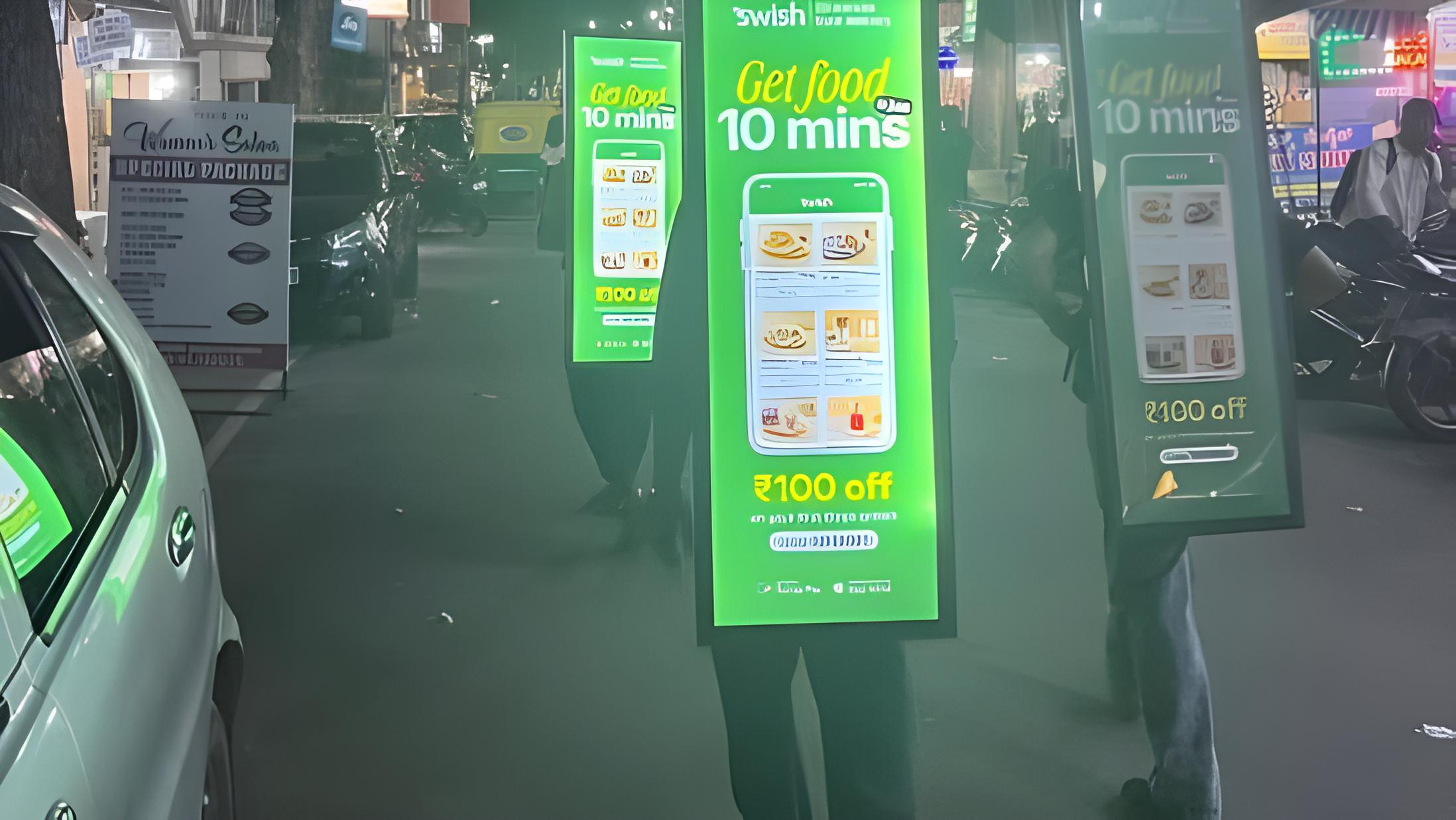 🤯 A photo of men carrying billboards to promote a Swish food delivery app in Bengaluru has sparked outrage online 😡📸. The image, shared by entrepreneur Roshan on X, quickly went viral, racking up over 1 lakh views 🔥👀, igniting a heated debate o
