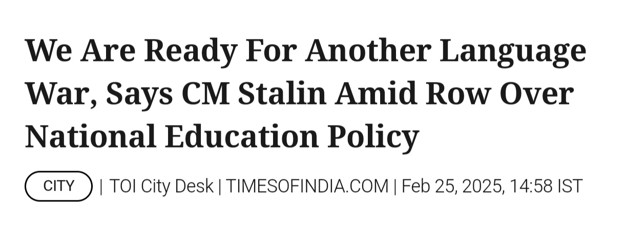 no you're preparing for war against us because Mk stalin just declared it ... we are also ready 🤕.... let's do the war