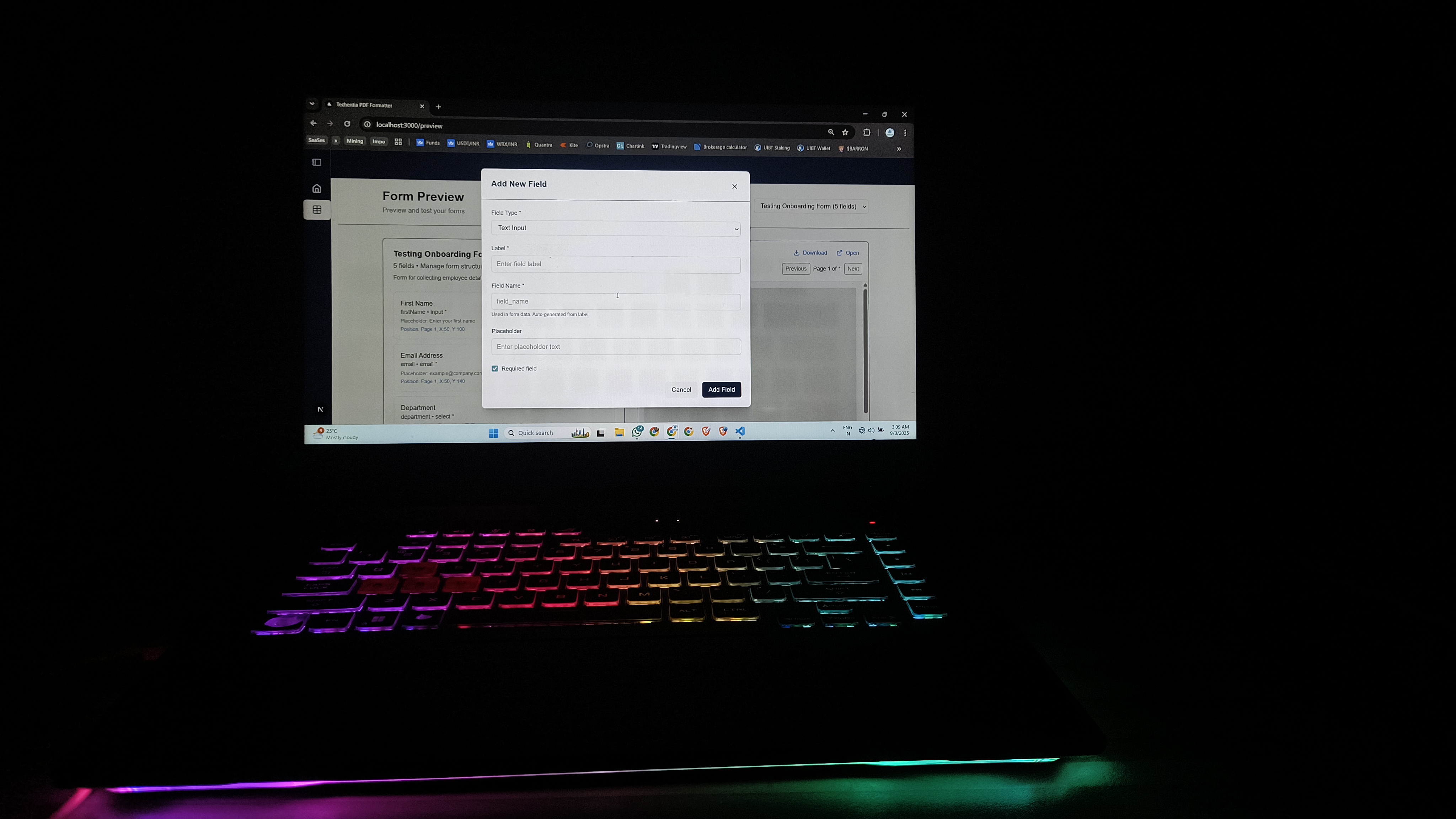 Week 1 of building my PDF SaaS completed ✅ Multiple form management ✅ PDF cloud upload ✅ CRUD ops for Dynamic fields ✅ Multi-purpose field component ✅ Form data preview Next up: Canvas preview & field size and position config #SaaS #PDF #b2b #p