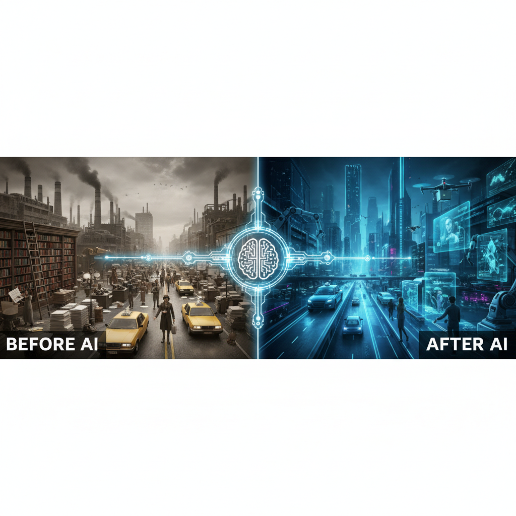 ๐๐๐๐จ๐ซ๐ ๐๐: The era of smoke, stacks, and manual struggle. Every task felt like pushing a heavy cart uphill. Clutter ruled, and time was a finite, heavily guarded resource. ๐๐๐ญ๐๐ซ ๐๐: We enter the neon glow of the futureโa world where i