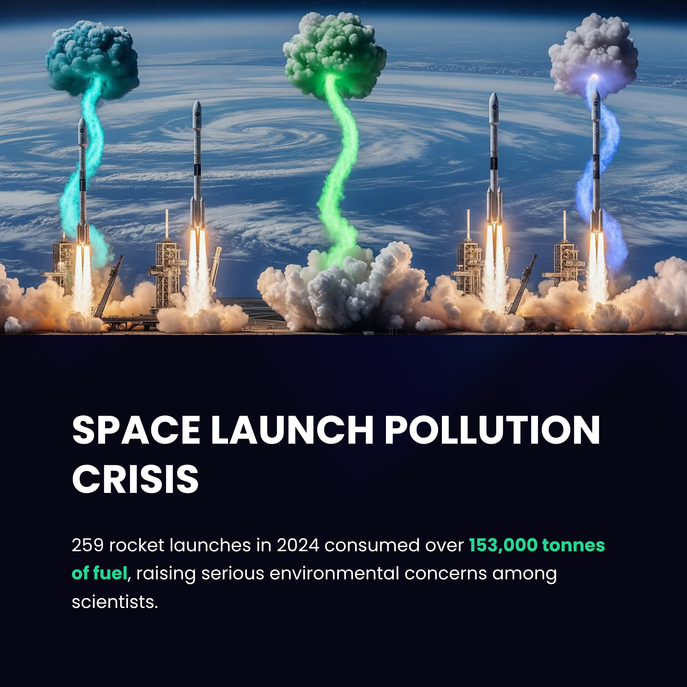 ๐ Space launches are soaring - but so is pollution. In just two years, over 480 rockets burned through 153,000+ tonnes of fuel, injecting toxic emissions directly into the upper atmosphere. ๐ Scientists warn: this isn't just innovation - itโs a