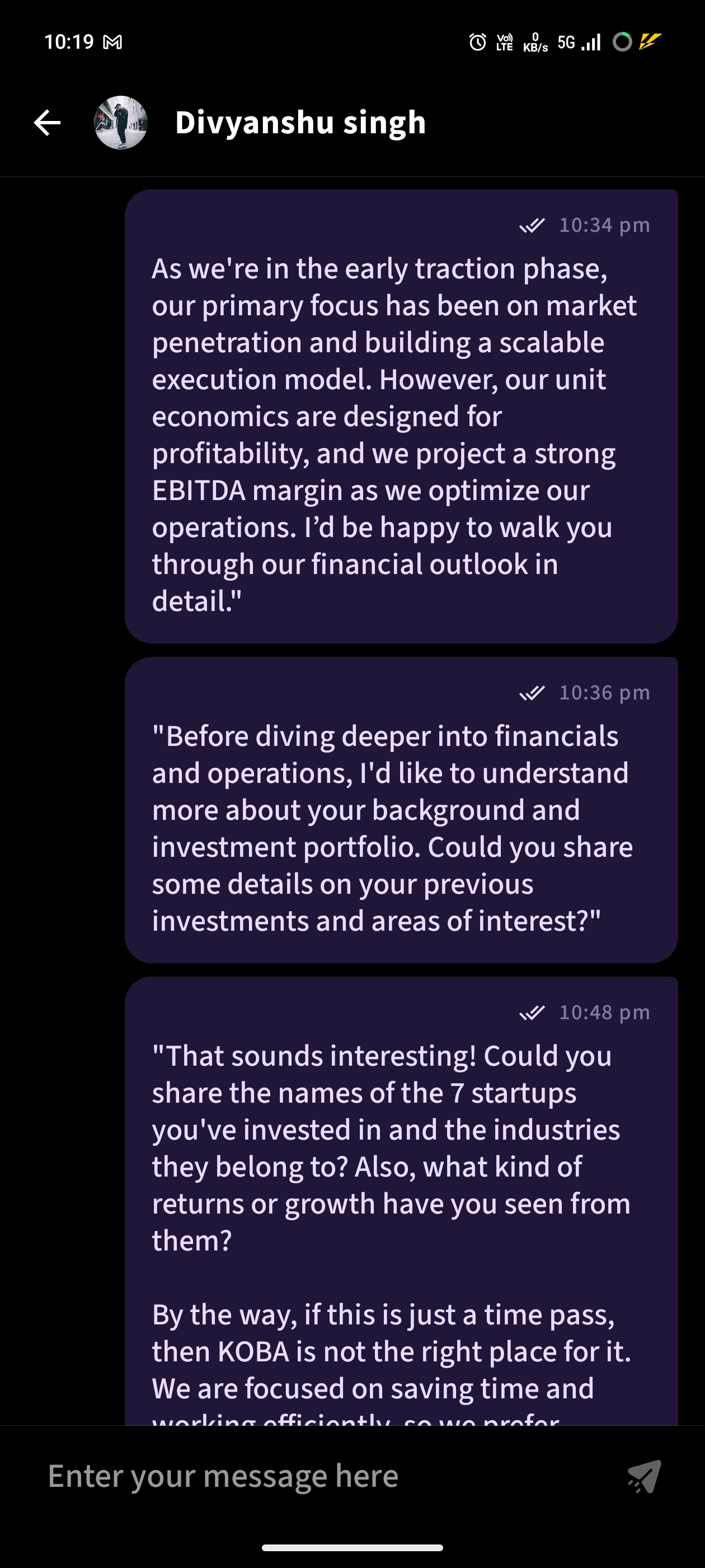 "Warning to all entrepreneurs and founders: Be cautious before sharing your business ideas with this person. I initially asked him about his past portfolio before discussing any investment, but instead of providing any proper response, he replied unprofessionally. When I pointed out that we prefer serious discussions and not time-pass, he immediately gave a rude reply and blocked me. This person has no real investments, no business background, and is known for taking others' ideas. If you're serious about your work, think twice before trusting him."