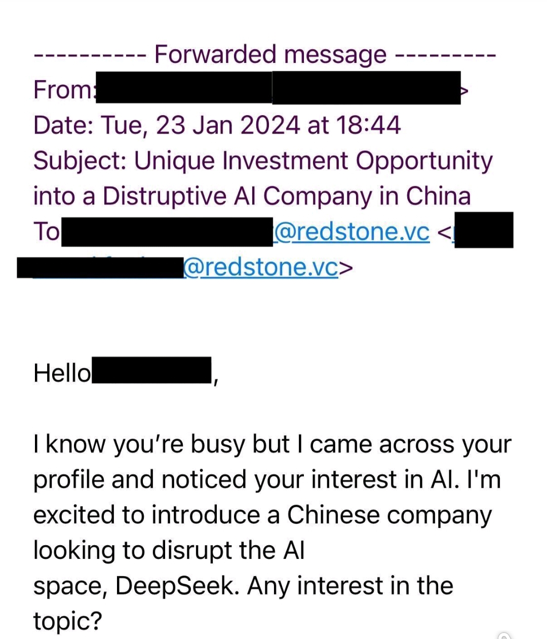 On January 23rd''2024, RedStone.VC received the application of Deep Seek AI stating that they will disrupt the AI Industry. But the RedStone.VC ignored & Surprisingly, They disrupted really just after one year. The word "Disruption & groundbreaking