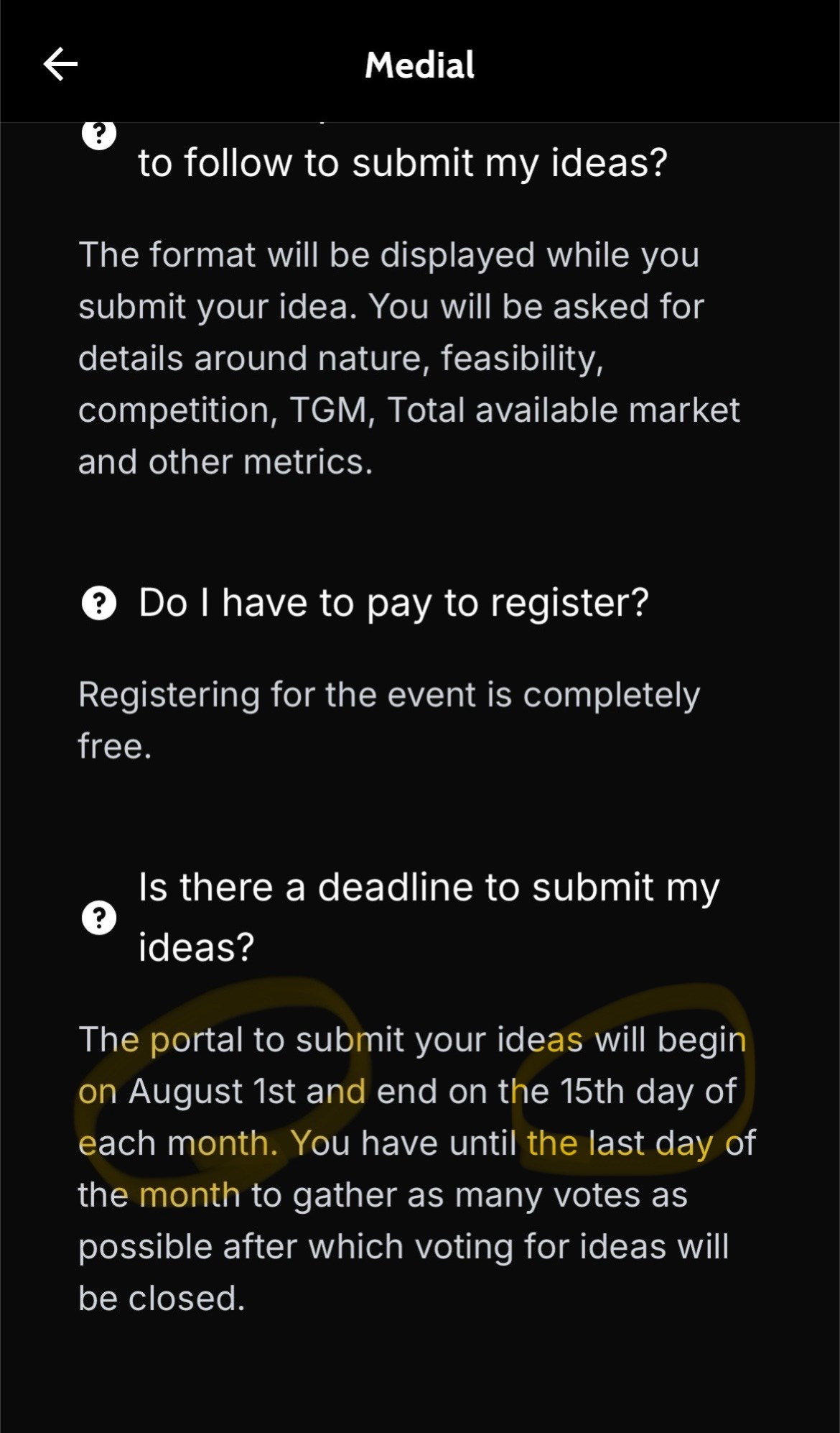 I have few doubts about the start-up showcase in MEDIAL 25th January is the last date mentioned in the banner But when we read the rules and regulations, it is mentioned as 15th of every month, also confused on why it is written as โ begins on Augu