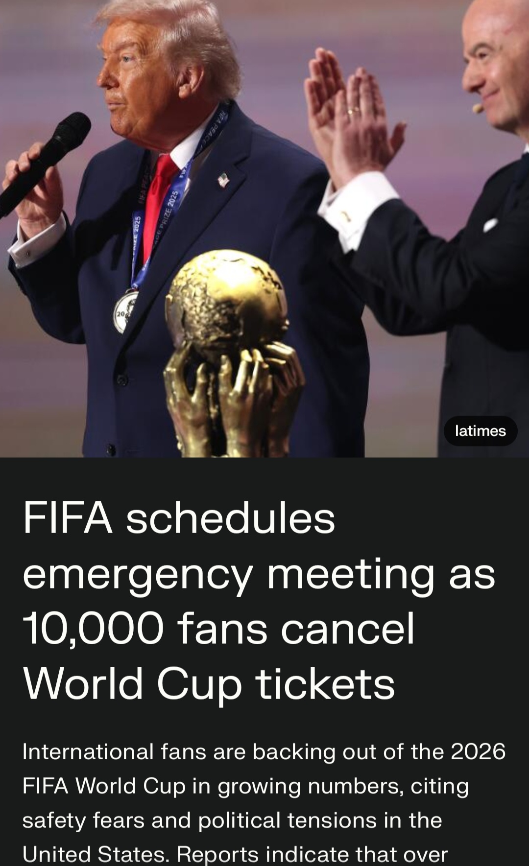 This is not a political post but the below news has a huge Economic impact because of what is happening in US Politics. Reports indicate that over 10,000 overseas supporters have cancelled FIFA world cup tickets, with some social media posts claimin