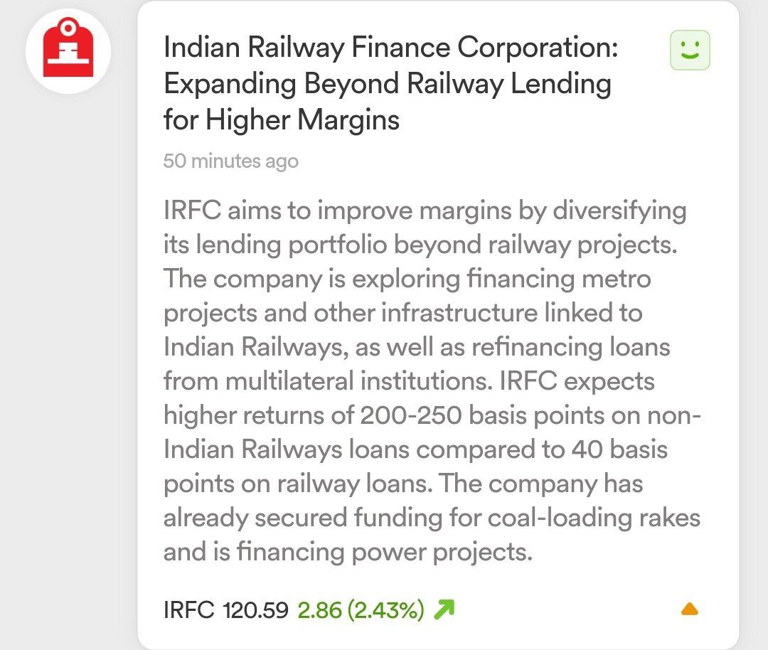 IRFC is looking to enter non-railway lending. If this happens, it could create issues for other infrastructure lenders because IRFC typically has a lower borrowing cost, which allows them to distribute loans at a lower interest rate.