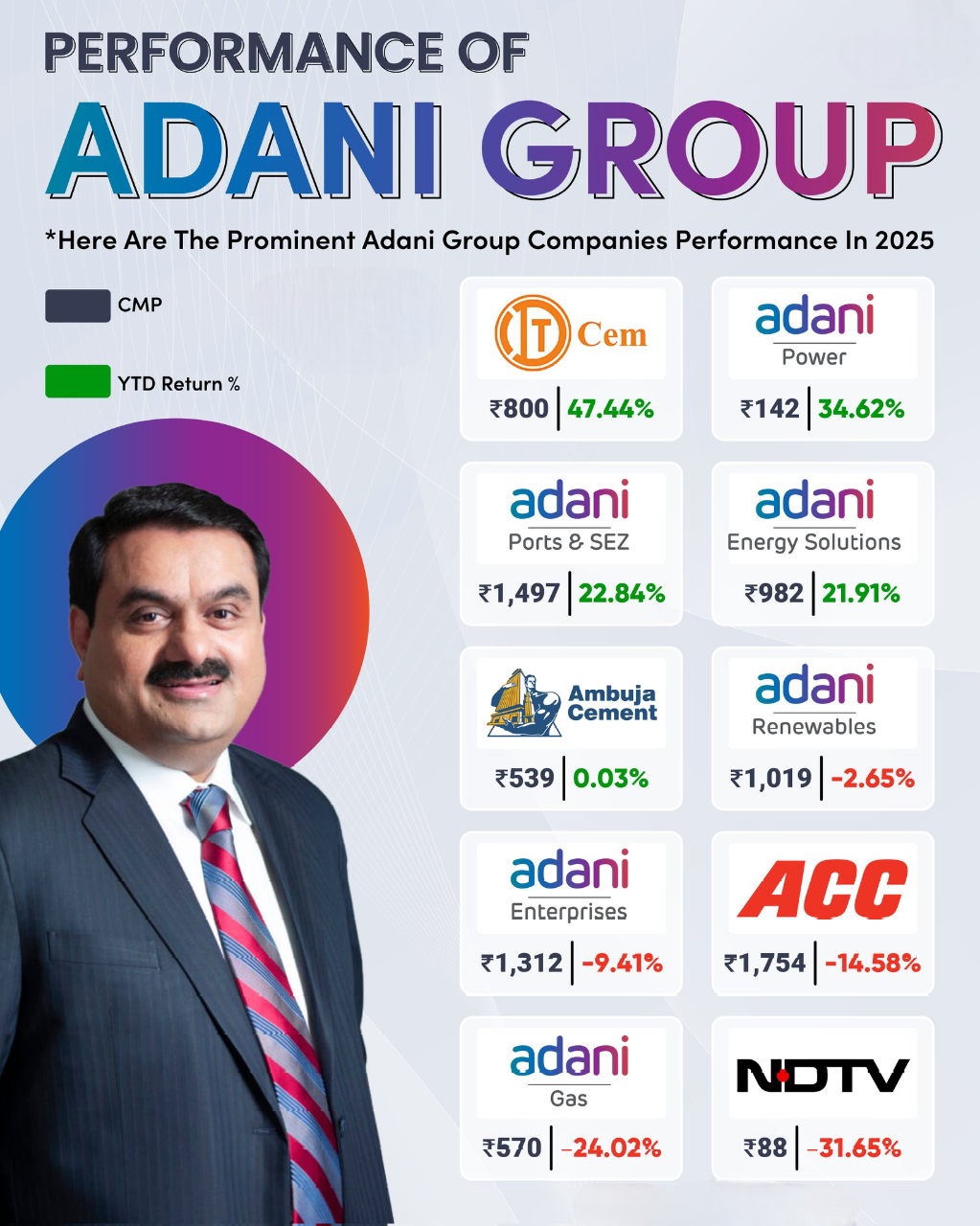 Performance of Adani Group โ 2025 Snapshot From power & ports to cement and renewables, the Adani Group shows a mixed but insightful performance this year. Some stocks delivered strong YTD gains ๐ while others faced pressure ๐ reminding us why d