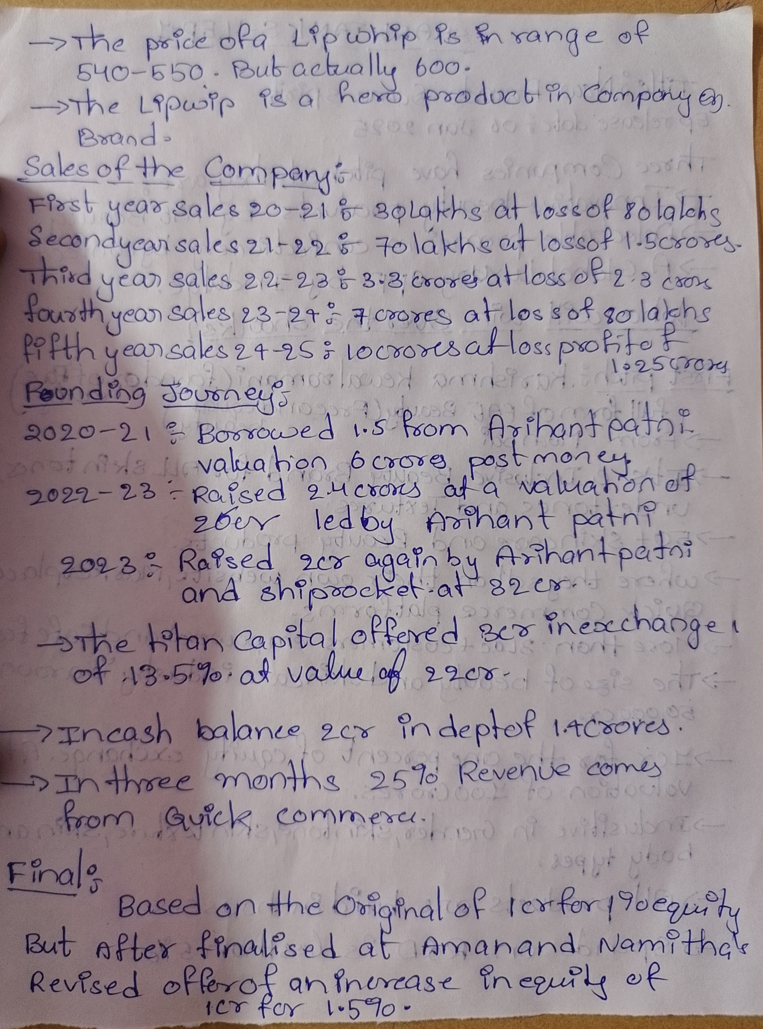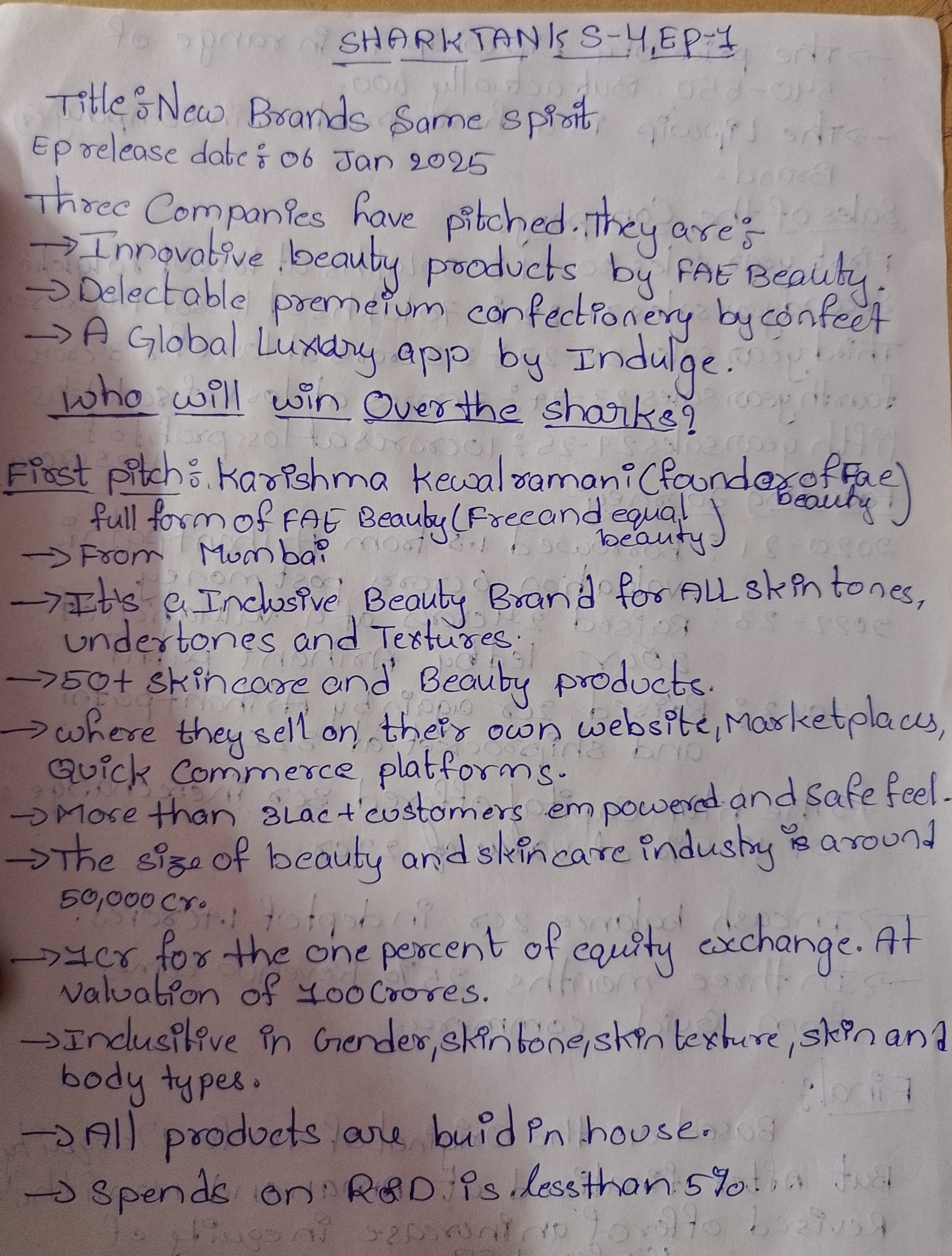 My hand written understanding about the FAEBeauty (Free and Equal Beauty) company that pitch on shark tank S4 Ep1. I have my understanding in paper. Everyone read and understand and share your opinions on it?
