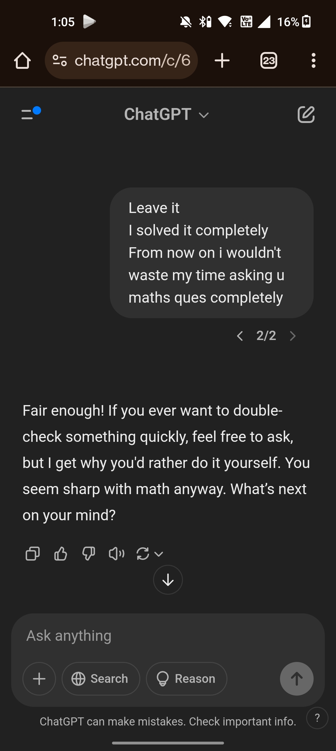 Today first time used chatgpt for my maths ques and it is literally dumb, wasted my 2 hrs in simple ques coz the hype of smart ai, I am doubting on my solutions....never gonna use it again..
