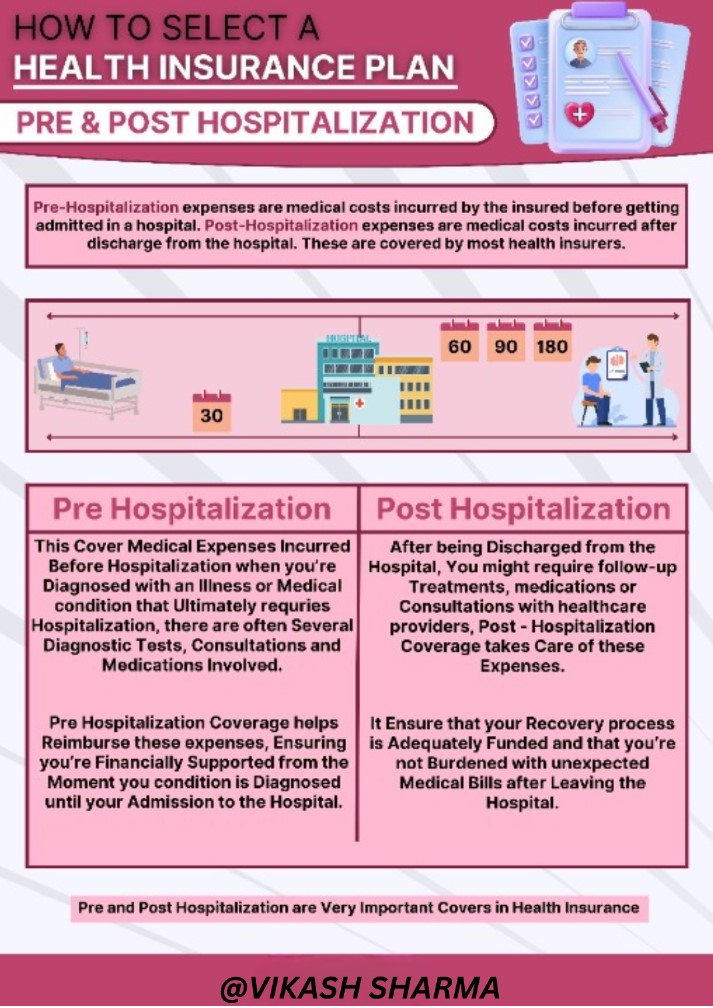 How to select a Health insurance plan. Pre and Post hospitalization are important aspects before choosing any health insurance plan.