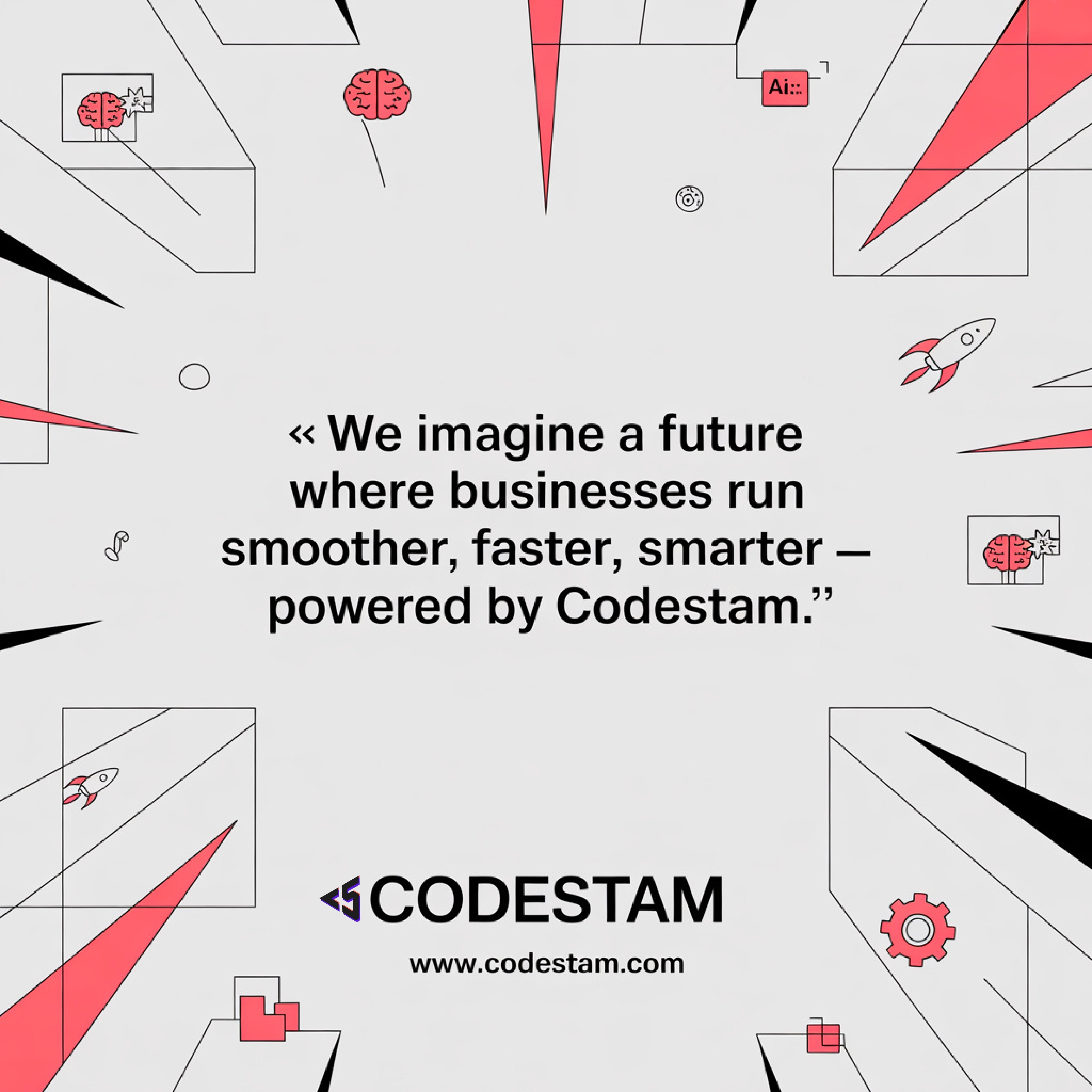 At Codestam, we believe the future of business is smarter, faster, and more efficient. We imagine a world where technology empowers organizations to focus on growth while operations run smoothly in the background. Our vision is simple yet powerful —