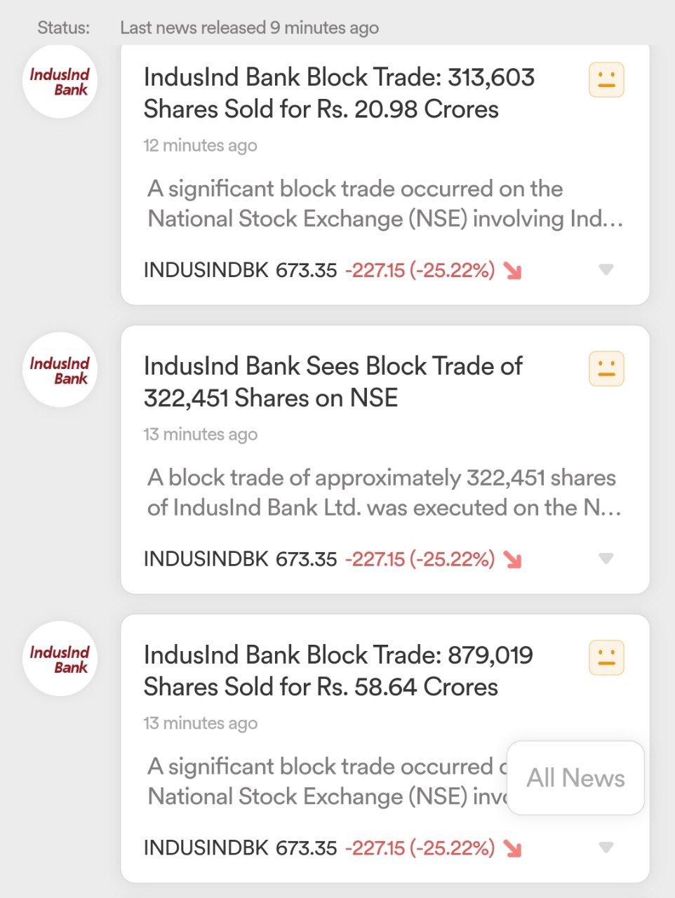 3 block deals, 25% fall in single day, IndusInd Bank ke investors ka hal Thora bura to hai avi