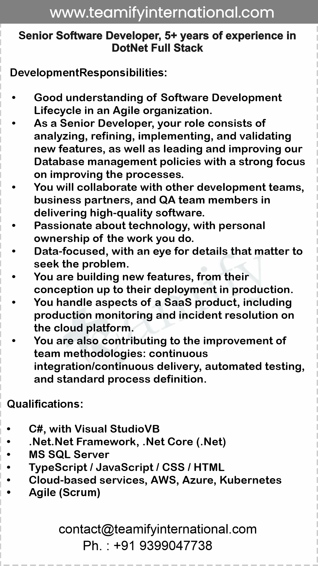 urgent requirement ! java and dot net developer! pls dm me or submit resume at teamifyinternationl.com/careers