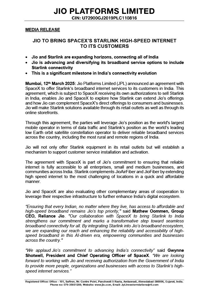SpaceX has also partnered with Jio for the Starlink deal. Thus, causing Airtel to lose its moat in just 10 hours 😁