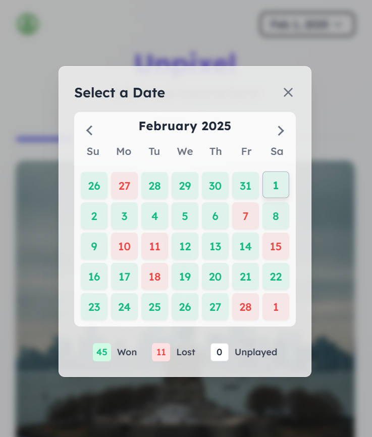1800+ games played in last 3 days since launching the date feature. Play www.unpixel.xyz , it's Wordle, but for Images.