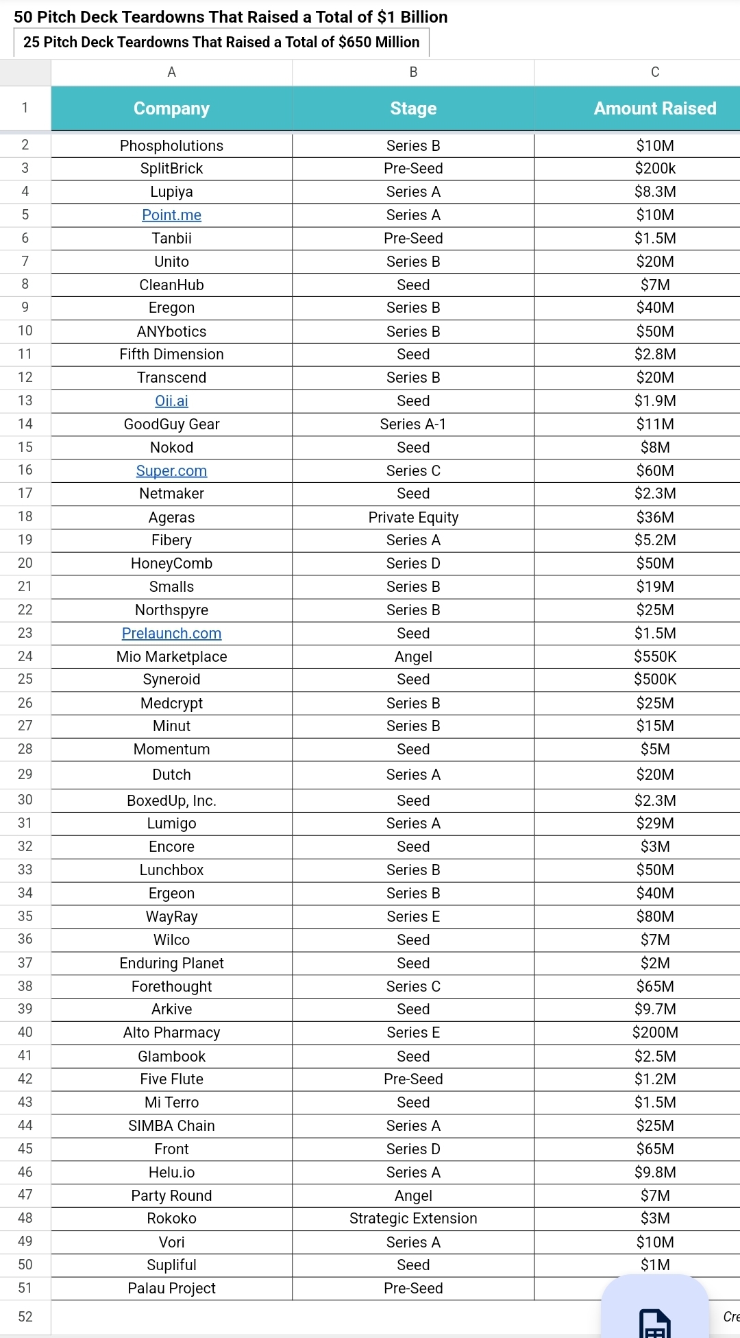 Hi, here's the list of 50 Pitch Decks that raised $1 Billion+ https://docs.google.com/spreadsheets/d/1DGBLYy9hp2QFM4e_satFUJTgb8kjDykR0pgQKkqESlg/edit?usp=embed_facebook