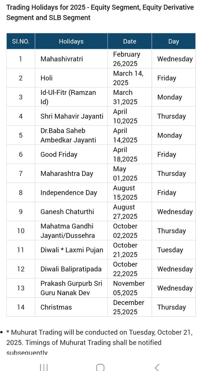 trading holidays in 2025