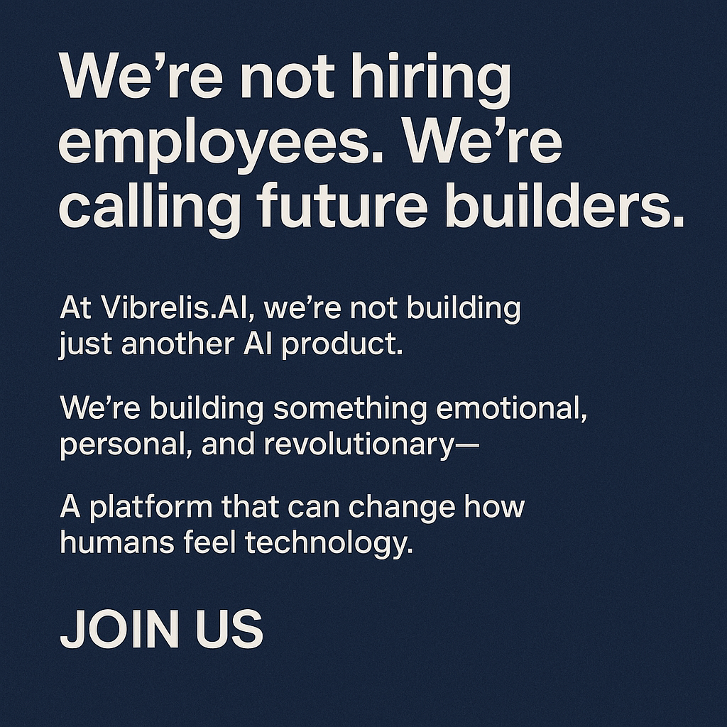 We’re not hiring employees. We’re calling future builders. At Vibrelis.AI, we’re not building just another AI product. We’re building something emotional, personal, and revolutionary— A platform that can change how humans feel technology. We’ve sta