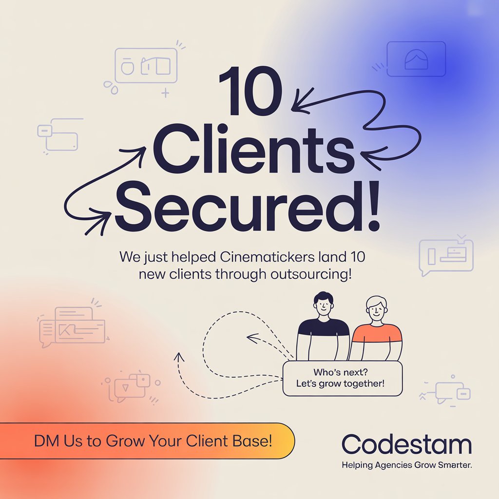 Big Win for Our Partner Agency! Just helped cinematickers lands 10 new clients through our outsourcing support. Because growth isn’t just about working hard – it’s about working smart and collaborating. Who’s next? Ready to scale without spending o