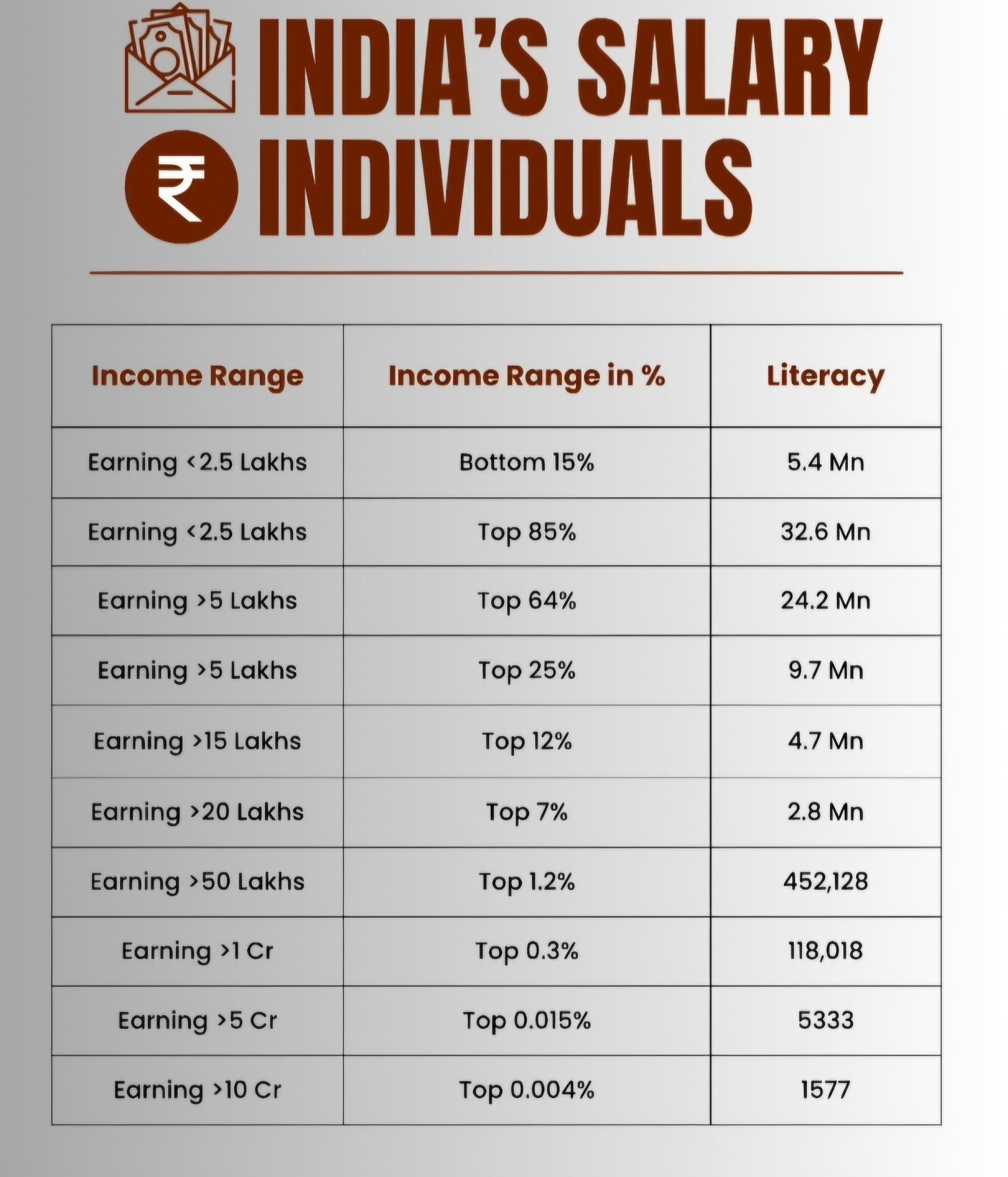 India's Income Pyramid Revealed ! ๐ฎ๐ณ Only 0.004% Earn more than 10Crore & 85% of people earn less than 2.5 Lakh annually โฌ๏ธ Open image โฌ๏ธ