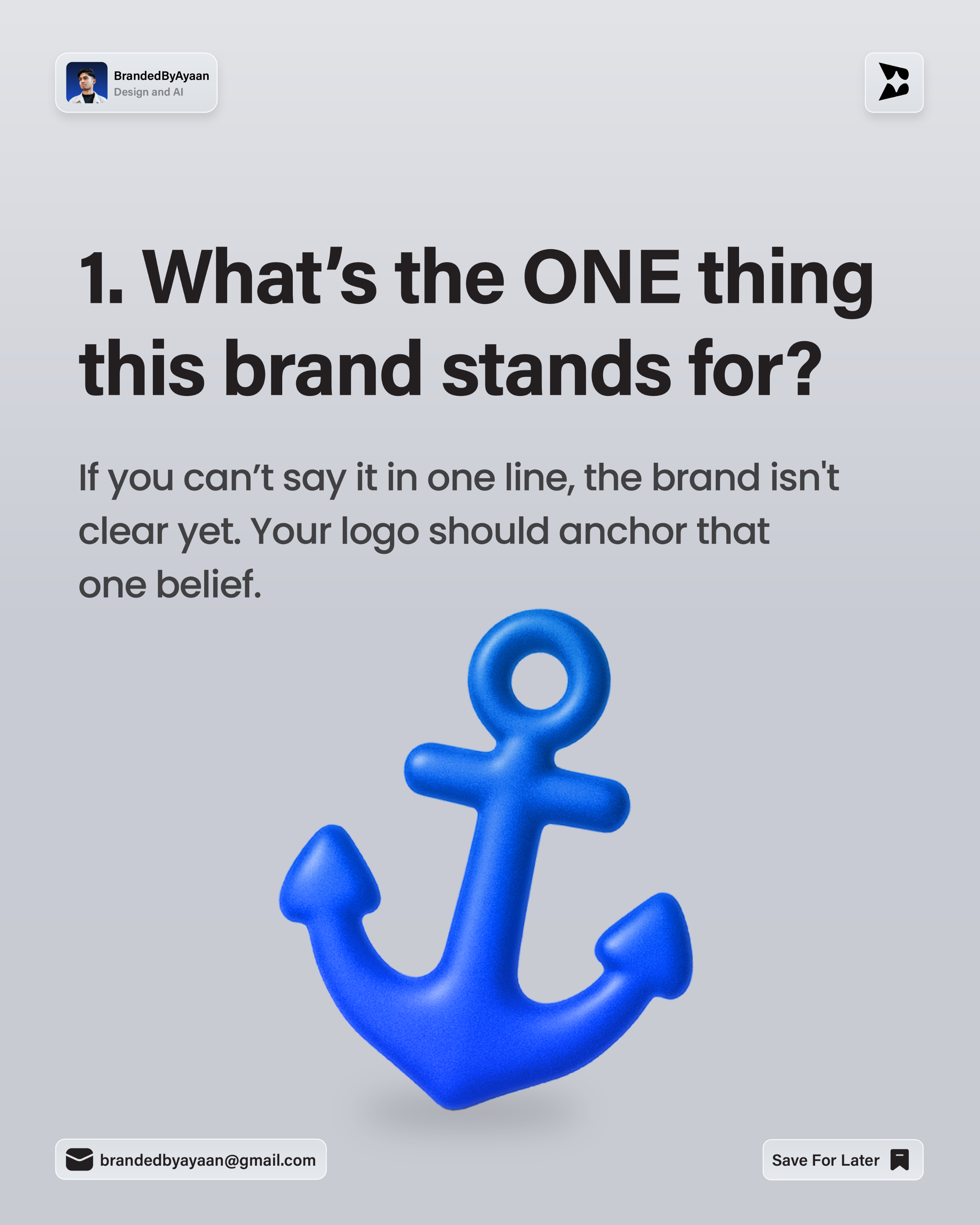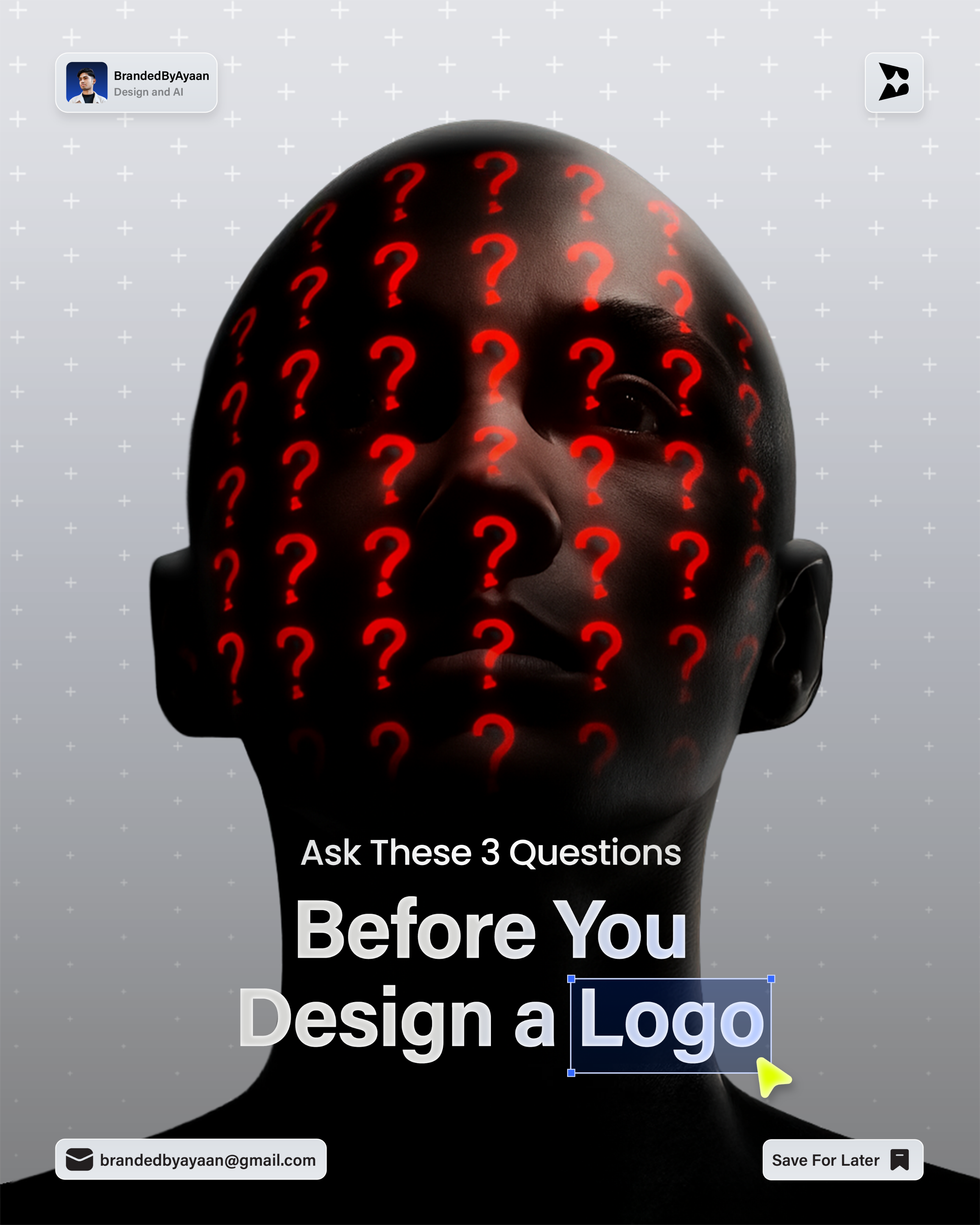 Stop designing logos blind. Most logos don’t fail because they look bad. They fail because there’s no strategy behind them. This post gives you 3 questions to ask before you open your design software so your logo actually means something. Save thi