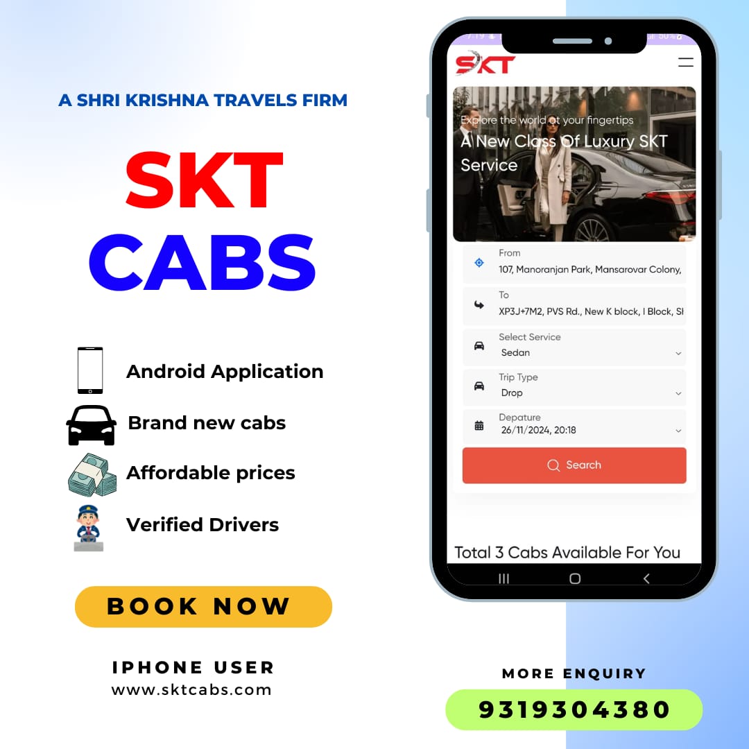 SKT Cabs โ Redefining the Way India Travels! No more driver-user conflicts. No more poor-condition cabs. No more last-minute cancellations. Drivers earn a fair income with dignity. And guess what? We are not just another OLA or UBER clone. We bring