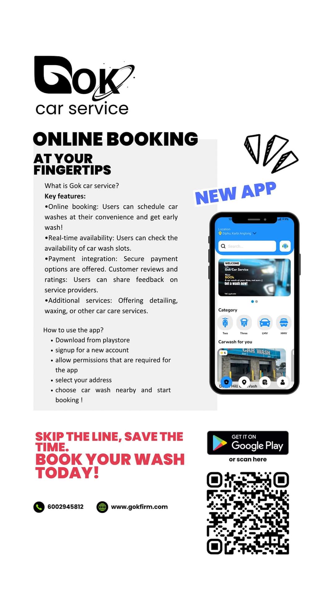 Gok firm is an Car wash Aggregator model It is a solution oriented application which connects car owners to multiple car wash services through our digital platform. Problems we discovered PUBLIC LONG WAIT TIME SHOP TURNS OUT TO BE SHUT NO INFORMATION REGARDING ELECTRICITY SOMEBODY TAKES YOUR TURN TO WASH PRIORITY ONLY TO KNOW PEOPLE OWNER MONEY LAUNDERING FAKE NUMBER OF CAR WASH NO PROMOTION NO FINANCE MANAGEMENT BAD CREDIT SYSTEM NO INFORMATION REGARDING FACILITIES NO RECORD OF MONTHLY PERFORMANCE I want to take my startup in large-scale I need your help dear investors Thank you so much