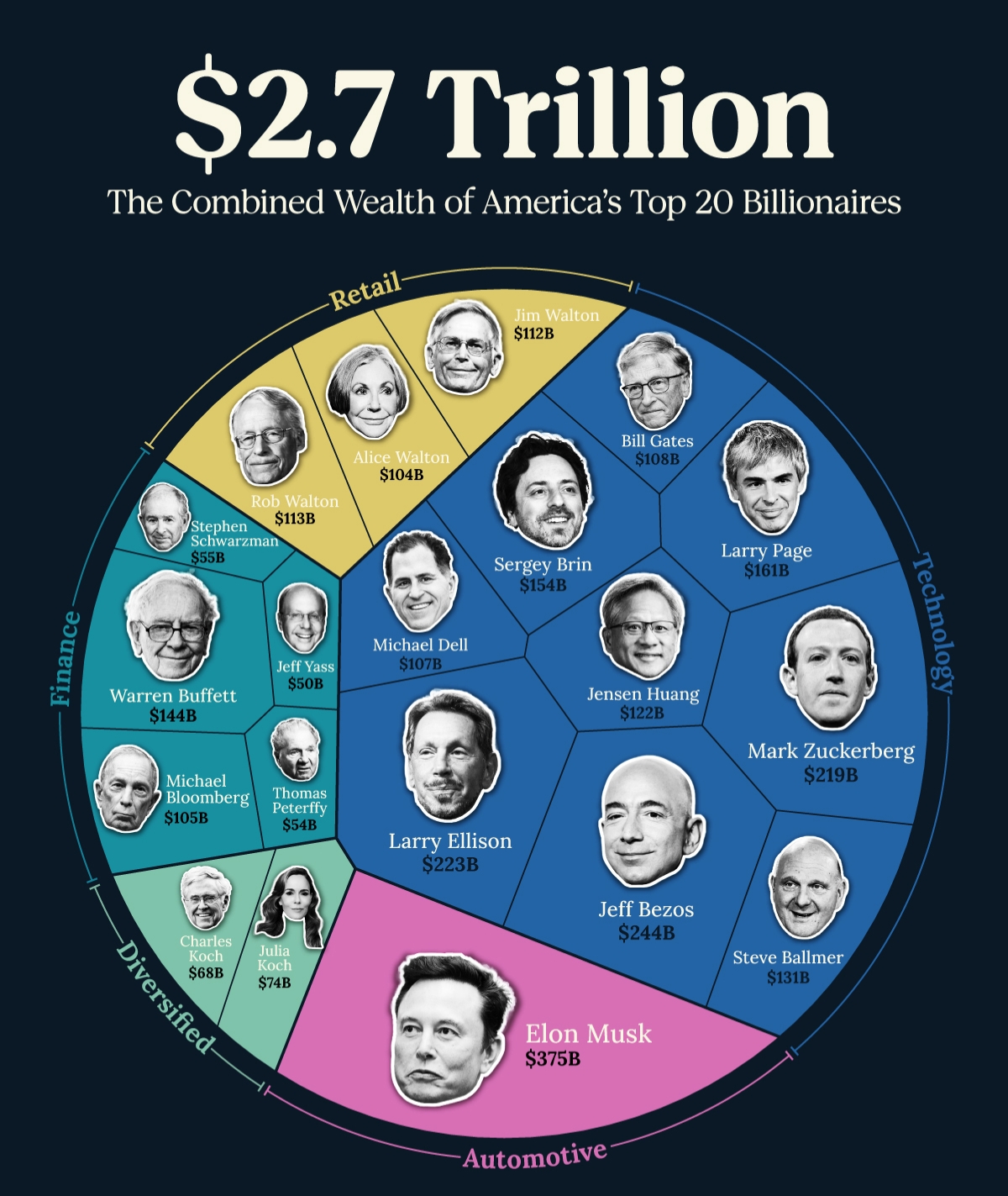 Combined wealth of America's top 20 billionaires -- 2.7 trillion dollar 💰💵