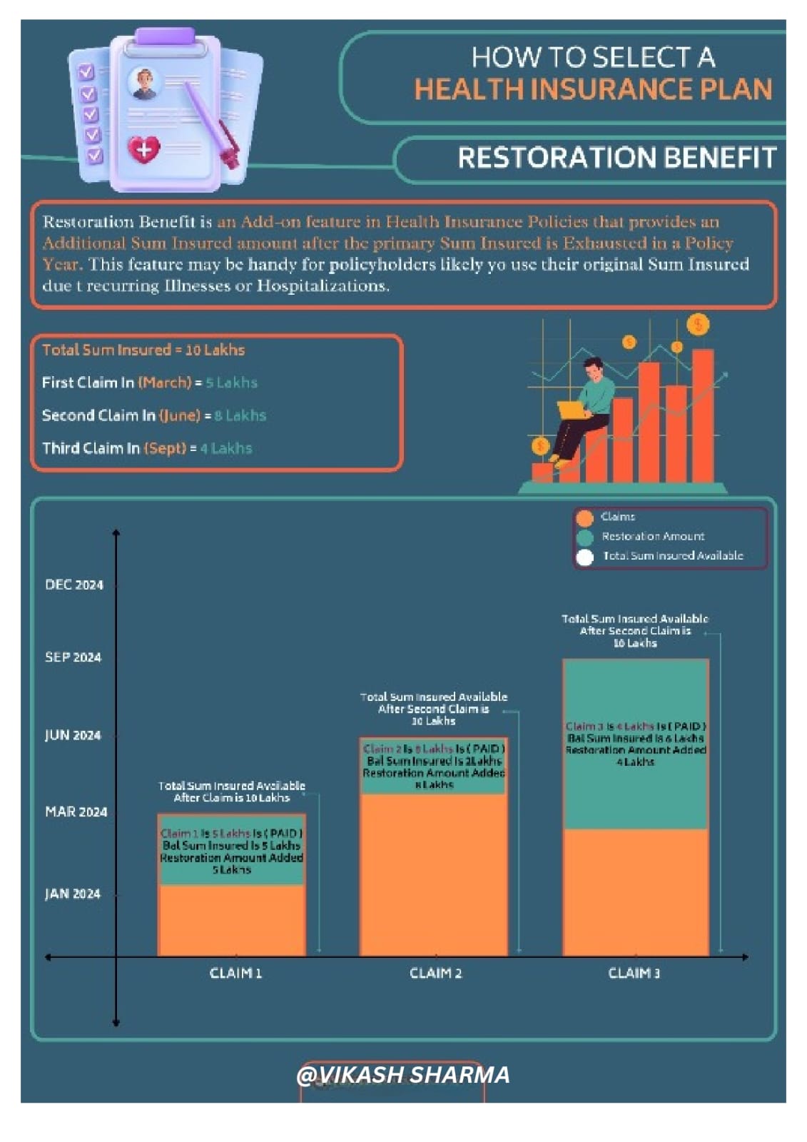 In modern Mediclaim policy we use to see Restoration benefits. This is a little bit complex to understand. Explained with easy illustration. If you like pls share with your friends and relatives and follow me for such updates.