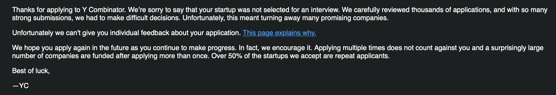 We got rejected from Y Combinator. Yesterday, we received the email that every founder both anticipates and dreads. Our application didn’t make it through. At first, it stung because YC is a dream platform for any early-stage founder. But when the