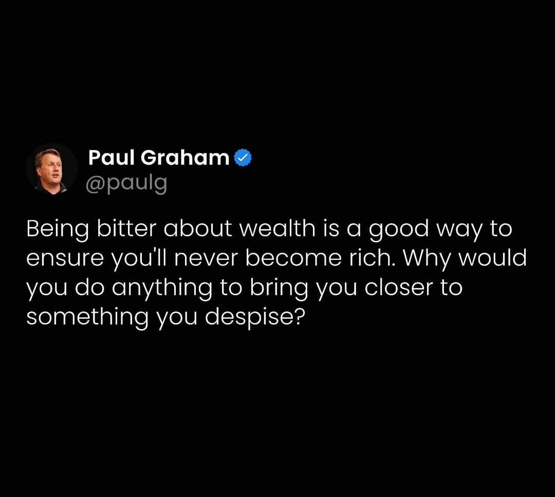 Hating wealth won’t make you rich. If you despise success, you’ll subconsciously avoid it. Shift your mindset admire, learn and build. That’s how you win