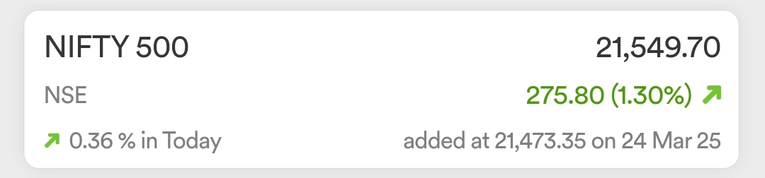 indian market me achi recovery deakhne ko mil rahi hai nifty 500 1.30% se up hai, ye mainly valuation, postive earning sentiment ke baje se hi ho raha hai.
