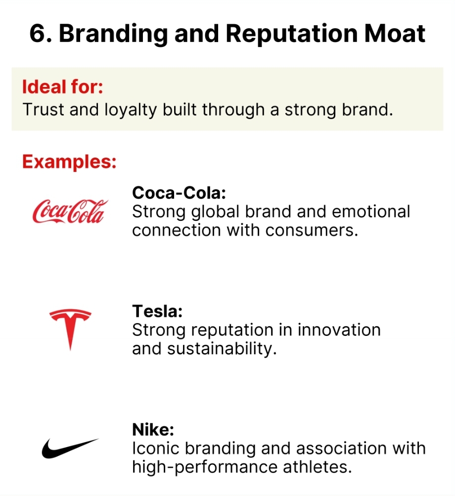 Your Brand is Your Biggest Asset! 🔥 Companies like Coca-Cola, Tesla and Nike dominate their industries by building trust, loyalty and emotional connections with consumers. A strong brand moat makes your business unforgettable! 💡