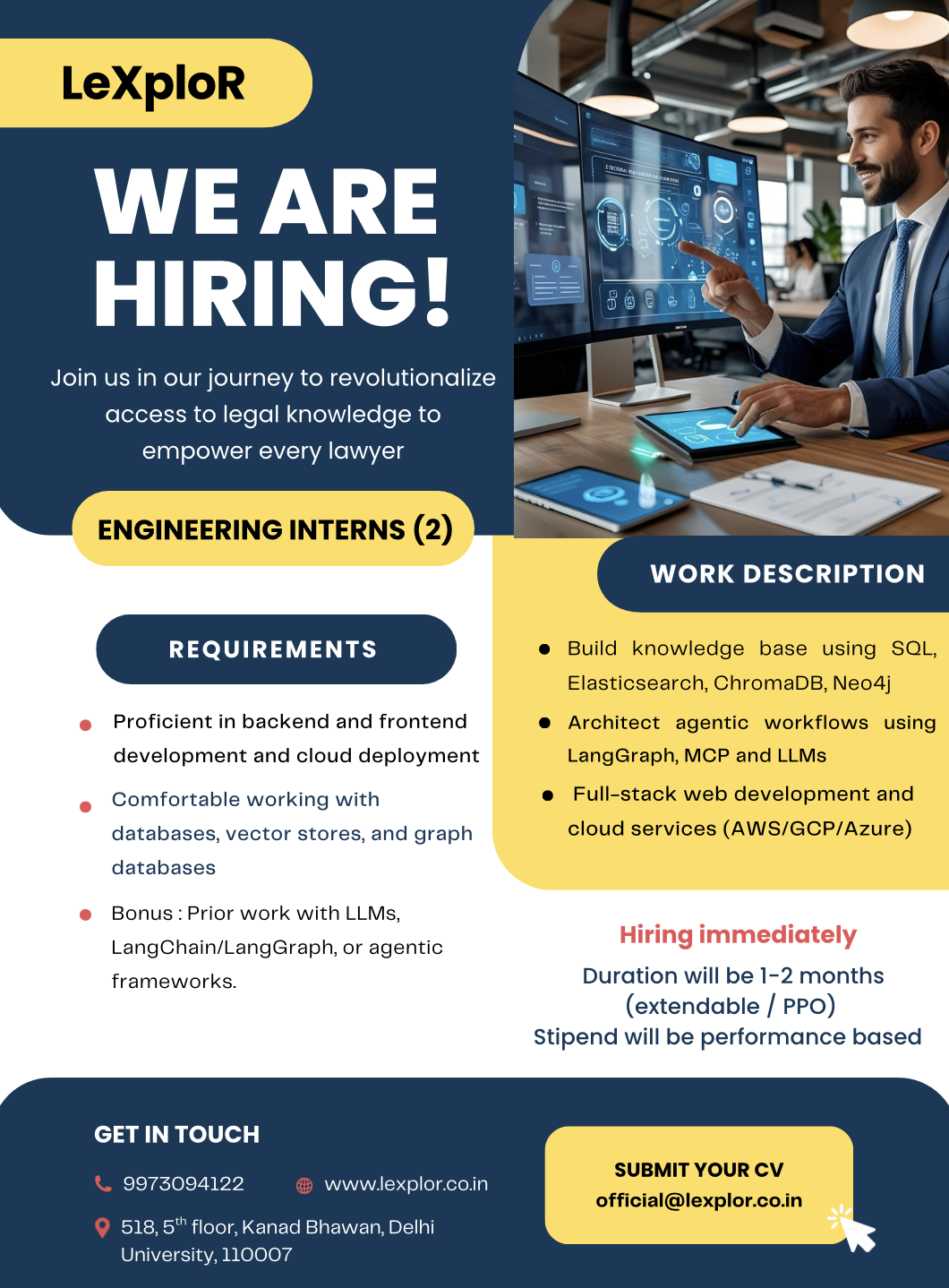 If you're obsessed with problem-solving and have the ability to think outside the box, keep reading! โฌ We atย LeXploRย are hunting for razor-sharp software interns with an obsession for building from scratch and a passion for democratizing legal knowl