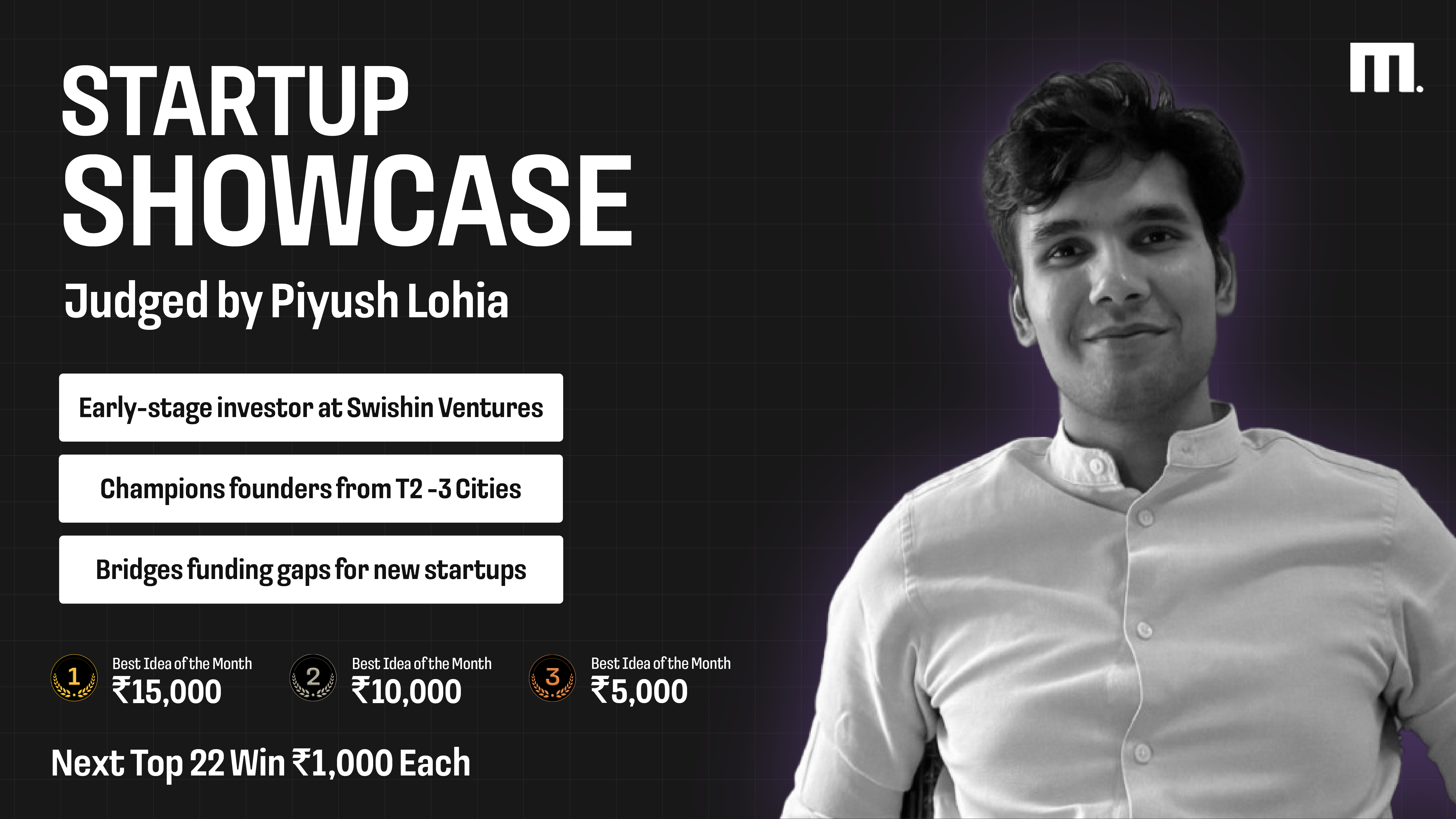 Announcement : Medial's Startup Showcase Winners for March 2025- After a month long marathon of brainstorming and seeing amazing ideas, we finally have the winners for this month's Startup Showcase selected by our judge Piyush Lohia from Swishin Ven