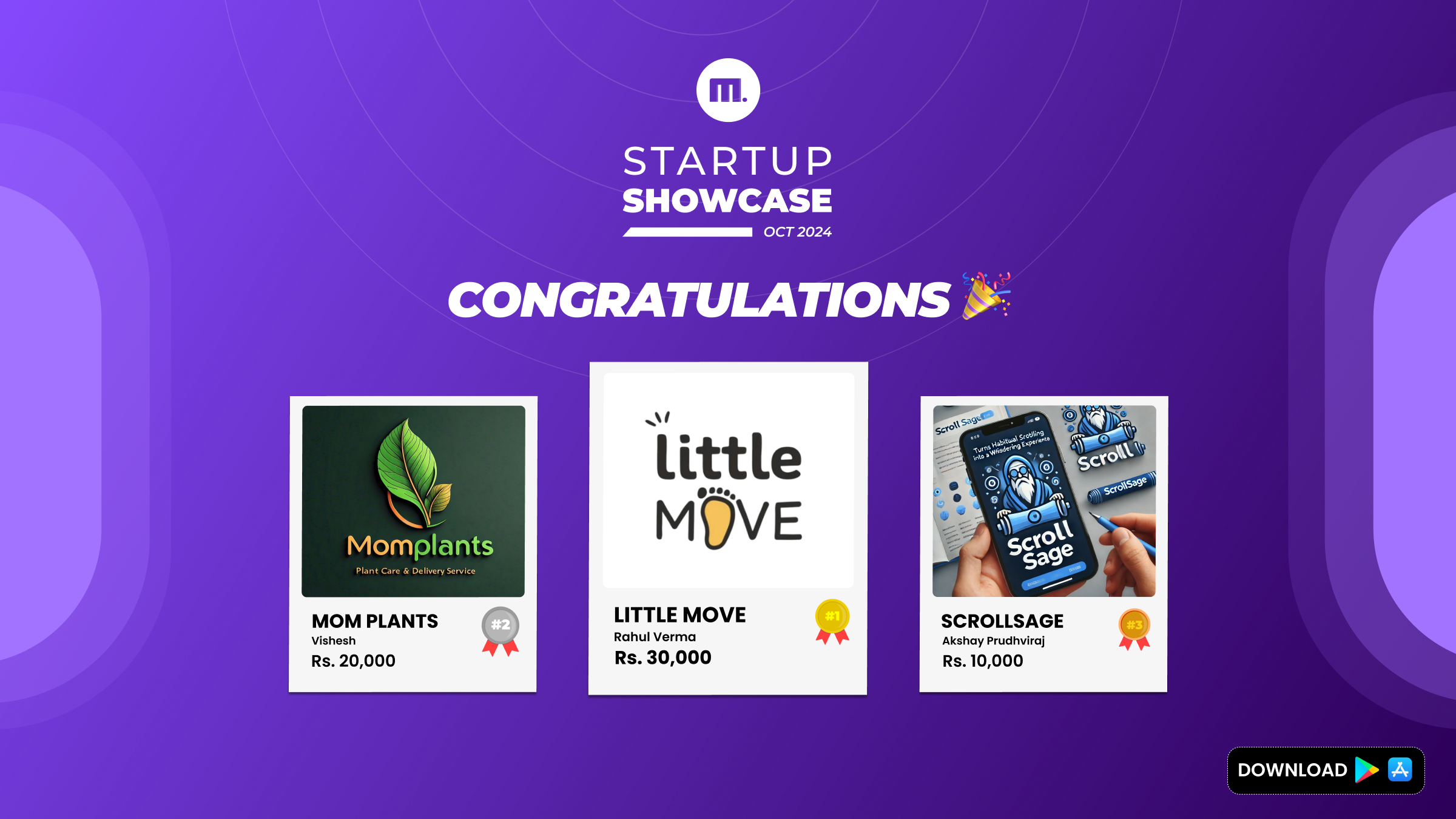 Announcement : Medial's Startup Showcase Winners for October 2024- After a month long marathon of brainstorming and seeing amazing ideas, we finally have the winners for this month's Startup Showcas selected by our judge Manik Gruver from Shastra VC