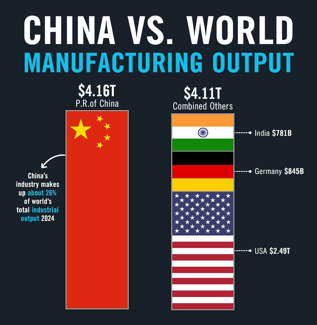 No one can beat China, even the US. Here's why: 1. Production Cost: iPhone assembly in China costs ~$6/unit vs. $30+ in the US. Tesla builds EVs in Shanghai 30% cheaper than in the US. 2. Labor & Scale: Average manufacturing wage in China is ~$3.5