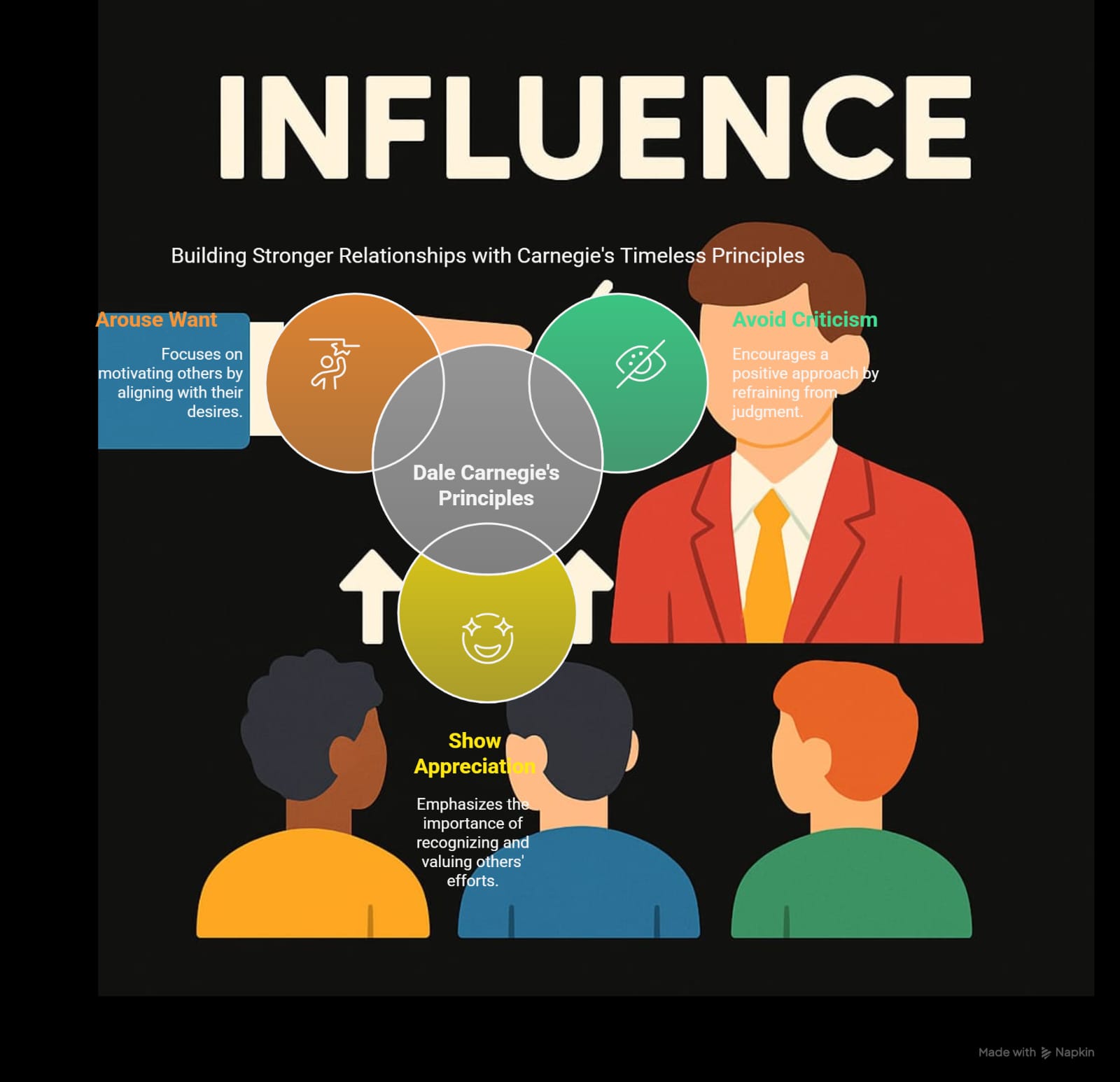 Principles for how to Win and Influence People , the key lessons form Carnegie Timeless Principles .
