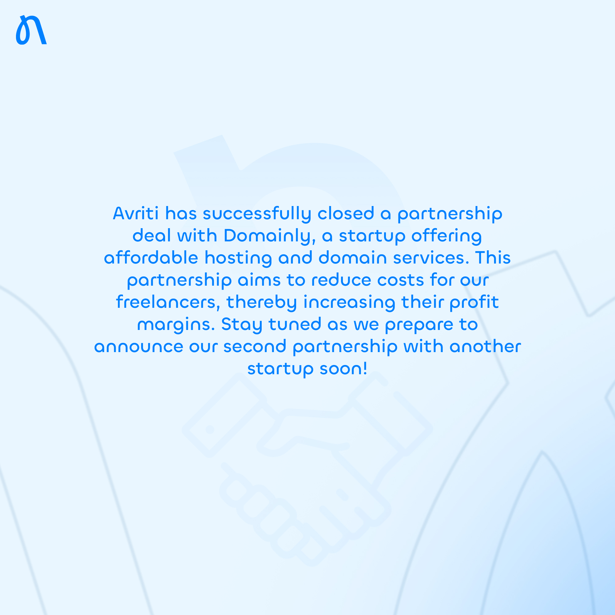 Avriti has partnered with Domainly to provide our freelancers with affordable hosting solutions & help them save on their costs. This will also help customers by allowing them to have up to 40% savings on Domainly's Shared Hosting Plans. After Avriti